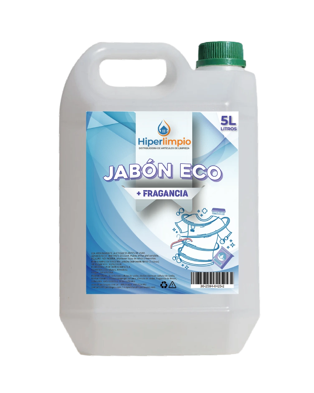 Jabón líquido para ropa TIPO ECONÓMICO, apto para todo tipo de prendas.