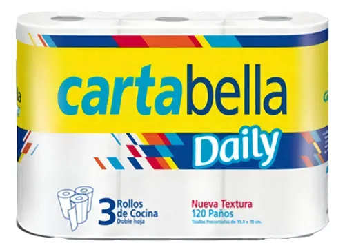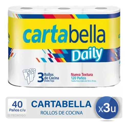 Rollo de Cocina Cartabella Paquete 3 Rollos de 40 paños cada rollo.